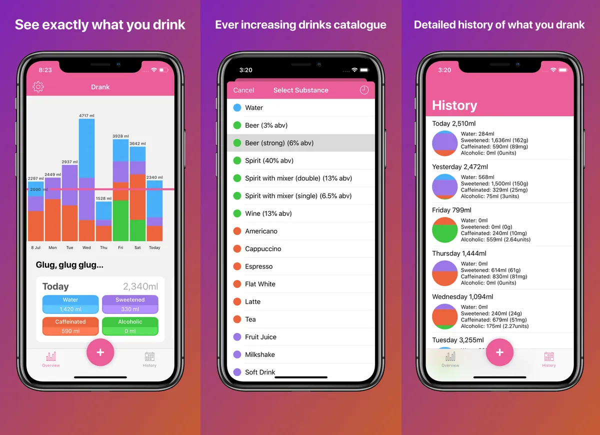 Together with Eddie Lee, we believe we’ve shipped an app that helps us drink more water, and less caffeinated or sugary drinks. Being able to see a breakdown of my fluid intake over time has really encouraged me to have a glass of water over another cup of coffee in the afternoon.